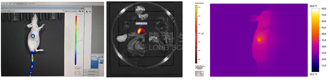小动物活体动物体内光学成像主要采用生物发光与荧光两种技术。生物发光是用荧光素酶基因(Luciferase)标记细胞或DNA,而荧光技术则采用绿色荧光蛋白、红色荧光蛋白等荧光报告基因和FITC、Cy5、Cy7等等。